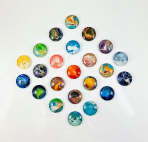 Pure Color Creations uses high quality glass cabochons as a “canvas” for hand-painted abstract art.