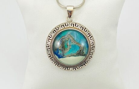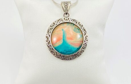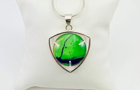 Our Solid Sterling Silver Pendants are lovely way to display your distinctive hand-painted glass, or natural, stone. Together, they are the perfect match.